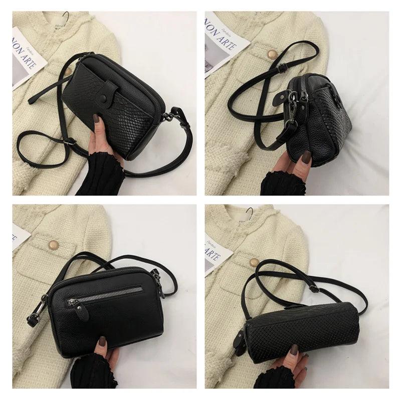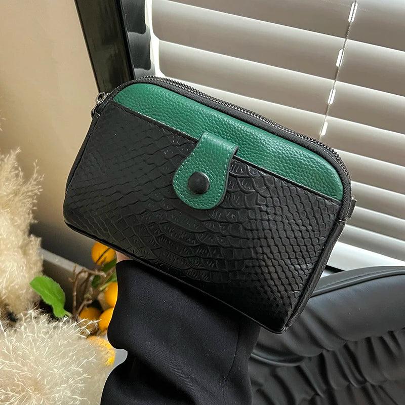 This stylish crocodile grain leather bag is perfect for women. It can be used as a shoulder bag or messenger bag, making it versatile for any occasion.