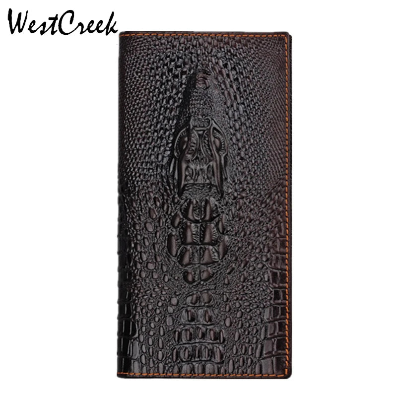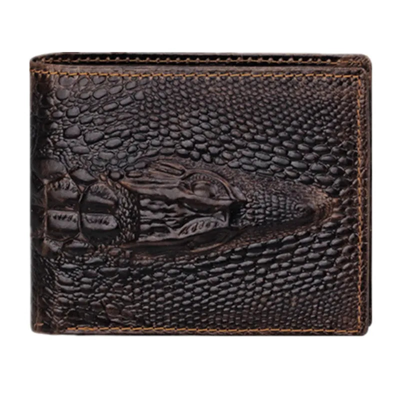 This high-quality men's wallet features a unique crocodile head pattern on genuine leather. It's a stylish and practical accessory for any man.