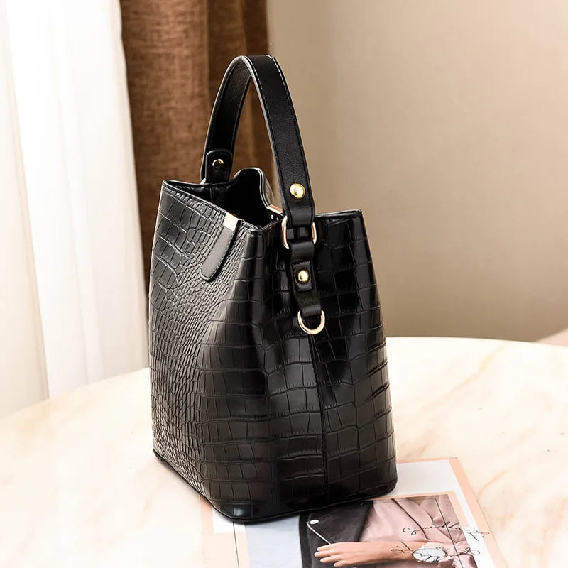 Crocodile Pattern Bucket Bag Women Shoulder Messenger PU Purse