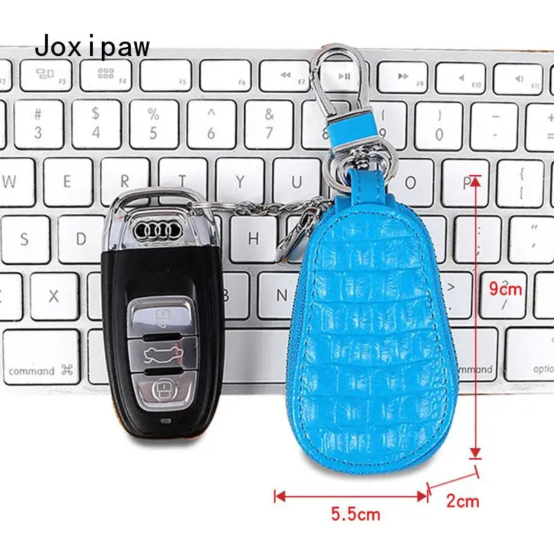Keep your car keys safe and organized with this stylish crocodile pattern pouch. Features a chain and key wallet for convenient use.