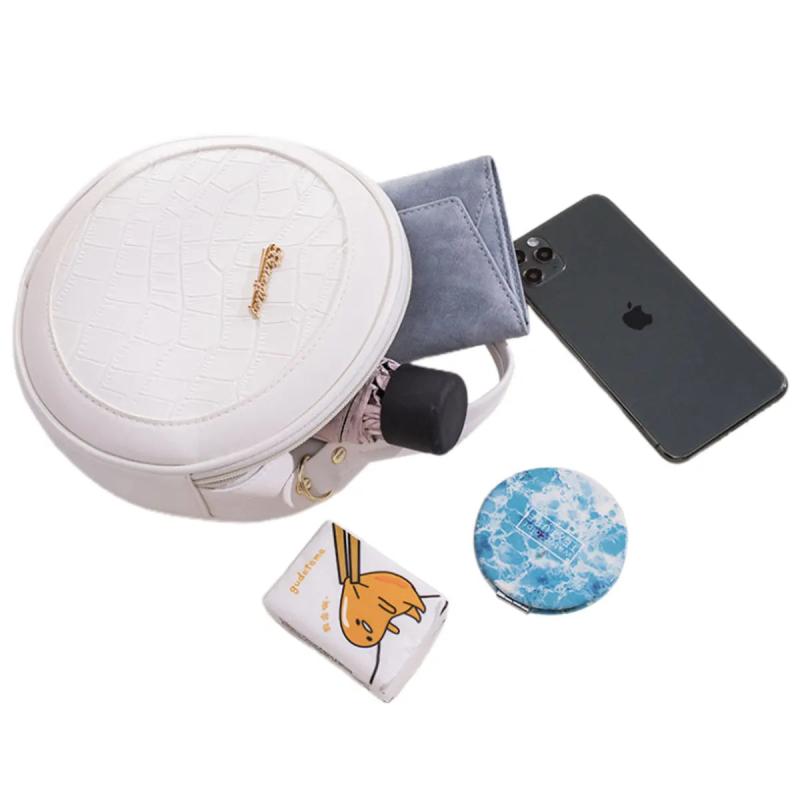 Crocodile Pattern Circle Crossbody Bag Faux Leather Shoulder Handbag