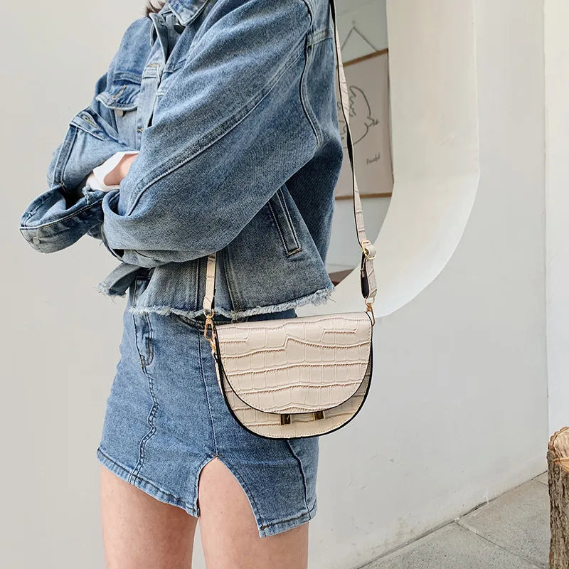 Crocodile Pattern Crossbody Bags for Women Half Round Messenger Bag