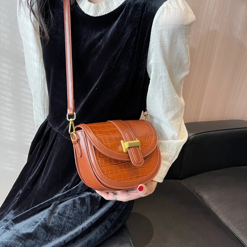 Crocodile Pattern Crossbody Saddle Bag for Women