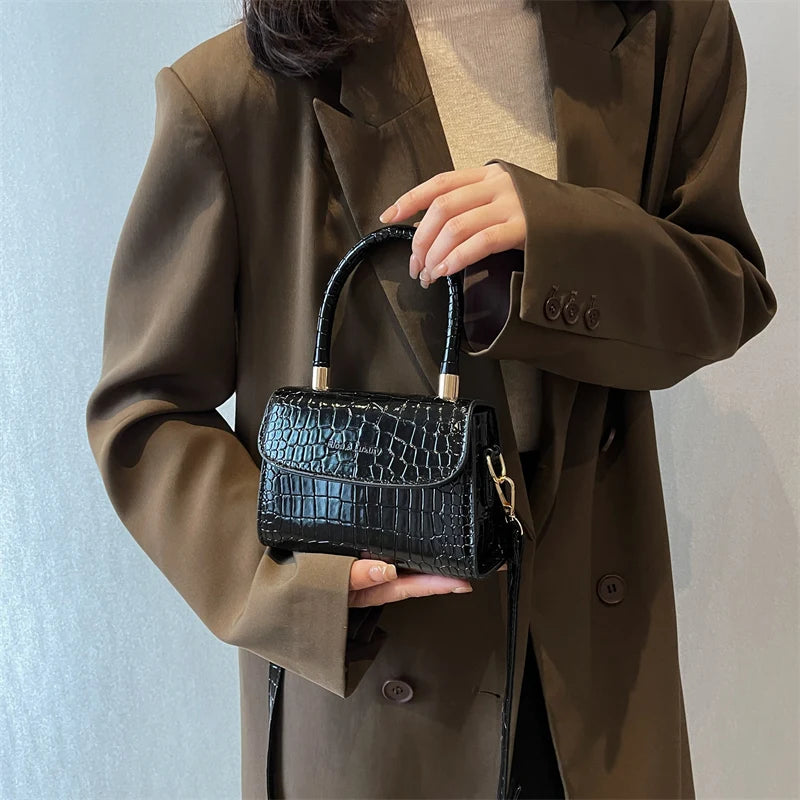 Elevate your style with this chic crocodile pattern crossbody bag that doubles as a shoulder bag. The silvery hue adds a touch of elegance, perfect for any occasion. This mini bag is both stylish and functional, offering enough space for your essentials.