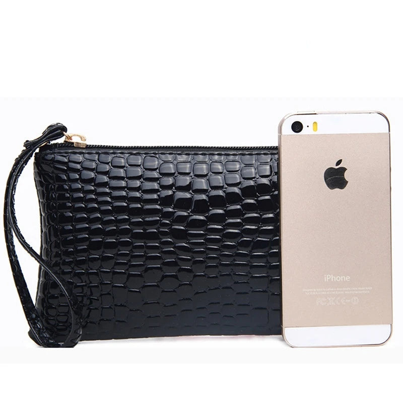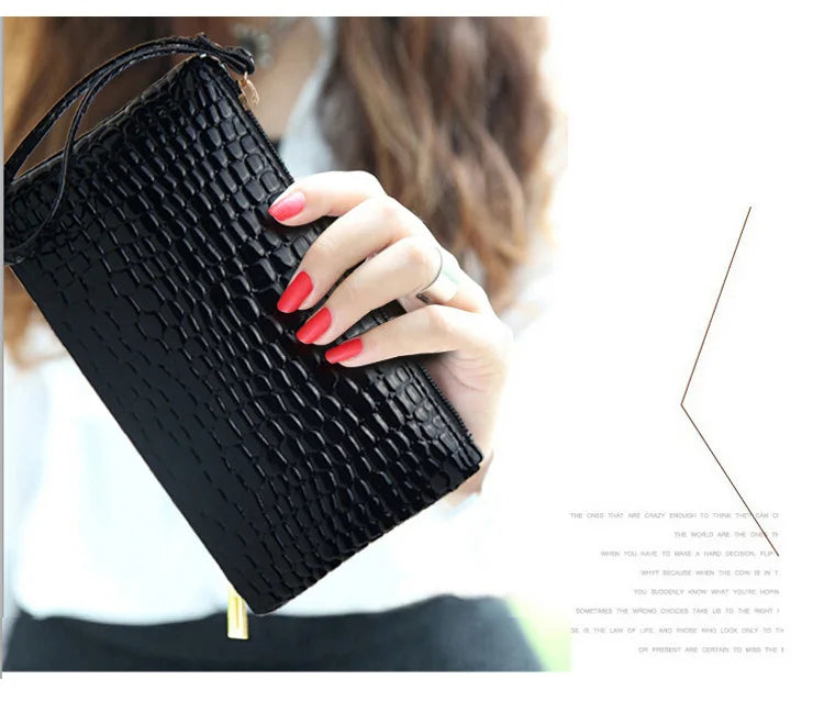 This women's purse features a crocodile pattern design with a zipper closure. Made of high-quality PU leather, it is versatile and can be used as a mobile phone bag or a wallet. The clutch design makes it easy to carry around for various occasions.