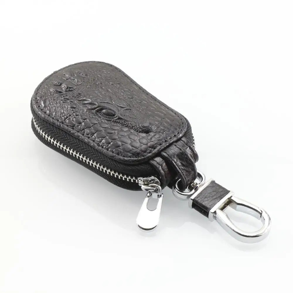 This small keychain is made from high-quality cowhide leather with a stylish crocodile pattern design. It is perfect for holding your keys and keeping them organized.