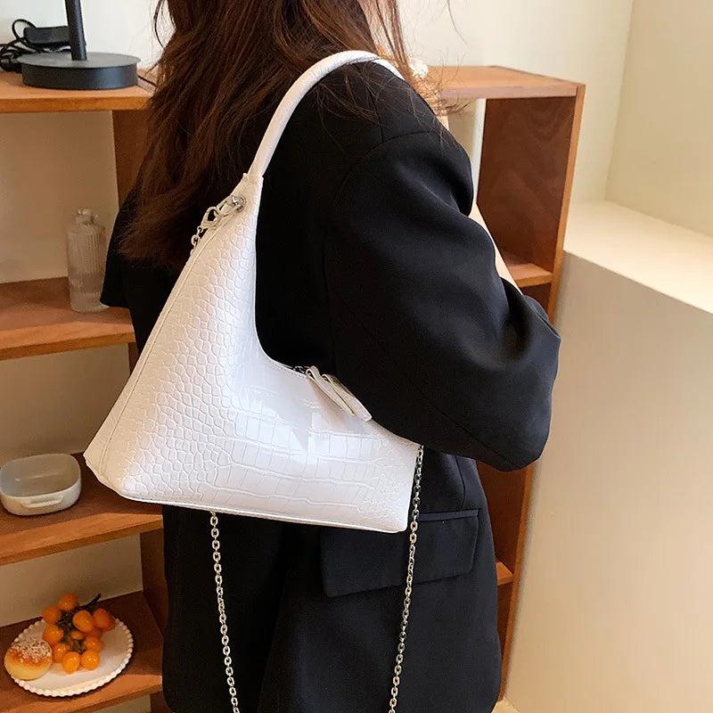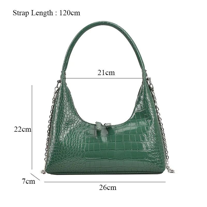 Crocodile Pattern Ladies Chains Hobo Shoulder Purses Stone Pattern Retro Underar