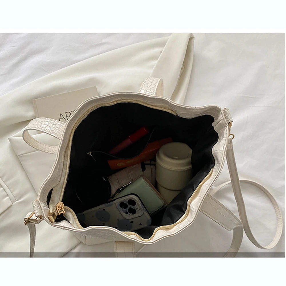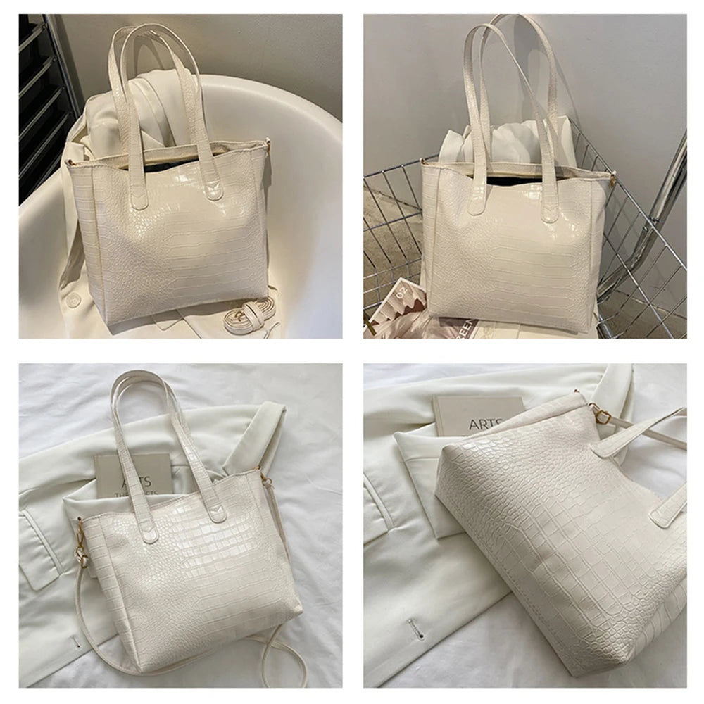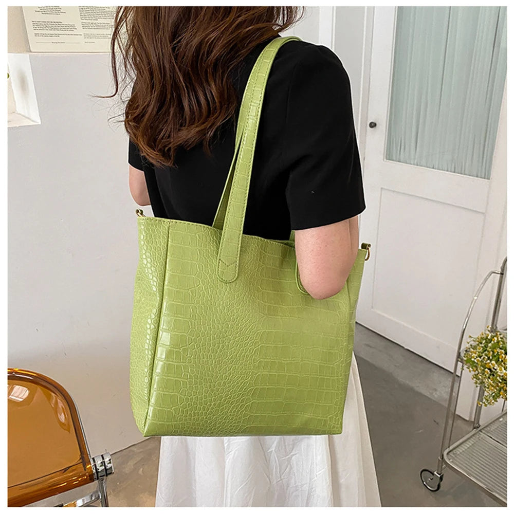 Crocodile Pattern Large Shoulder Bag for Women - Shopping & Travel Tote
