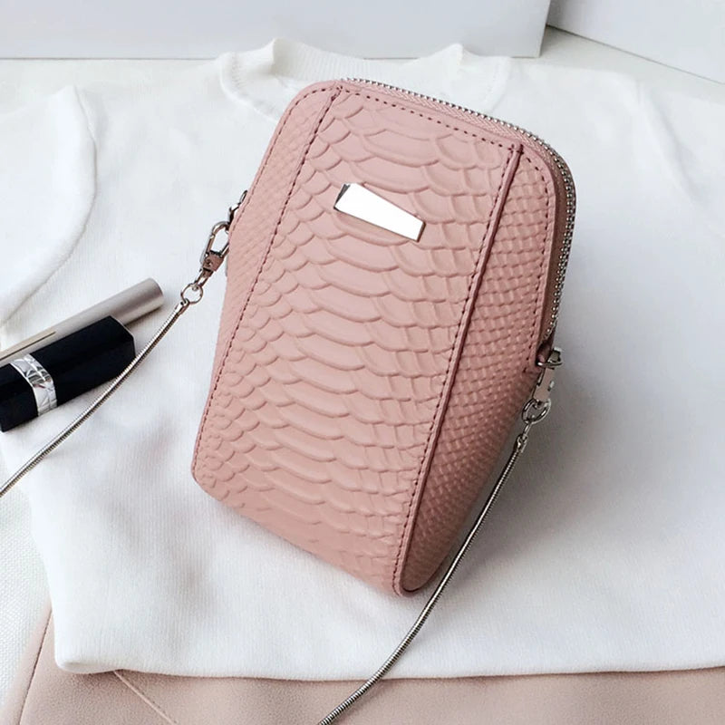 This stylish mini mobile phone bag features a crocodile pattern design, perfect for carrying your essentials while on the go. It can be worn as a shoulder bag or a crossbody bag, making it versatile and convenient for travel.