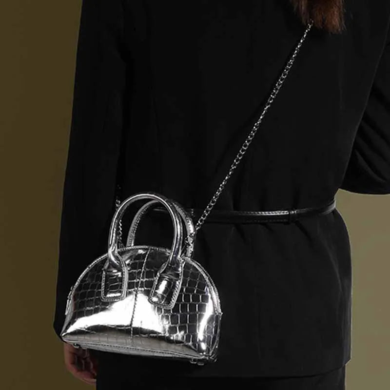 Elevate your party look with this chic mini shell bag featuring a crocodile pattern design. Perfect for summer occasions.