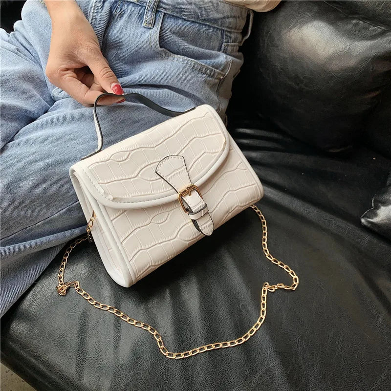 Stay stylish with this portable small square bag featuring a crocodile pattern design. Perfect for carrying your essentials on the go.