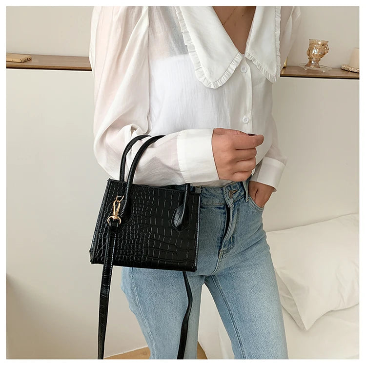 Crocodile Pattern Women Small Square Bags Classic PU Leather Ladies Crossbody