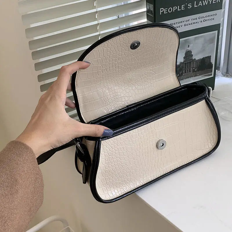 Elegant and stylish crocodile pattern women's shoulder bag made of high-quality PU leather. Perfect for everyday use and can easily hold your essentials.