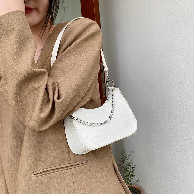 Stay stylish with this PU leather underarm bag that features a crocodile pattern. Perfect for carrying essentials while adding a touch of sophistication to your outfit.