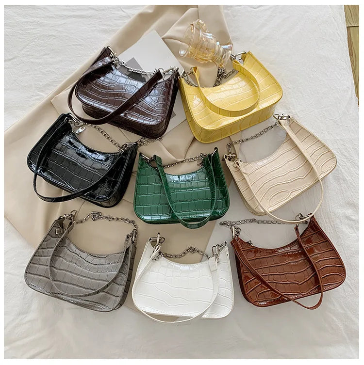 Crocodile Pattern Women Underarm Bag Chain Purse Handbags