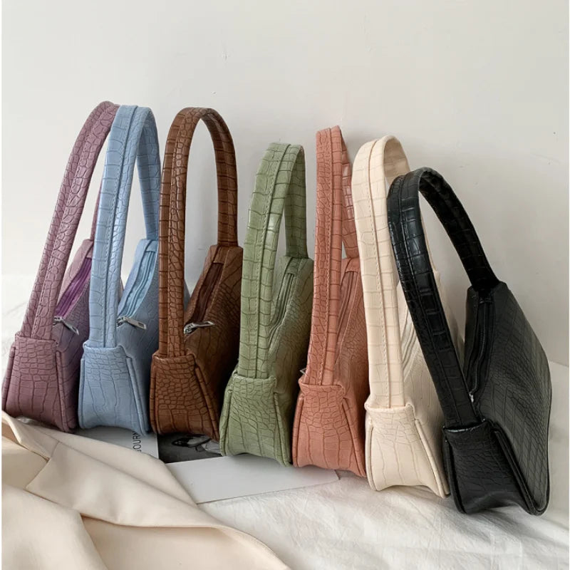 This underarm bag is made of soft PU leather with a stylish crocodile pattern. It is perfect for everyday use, adding a touch of vintage flair to your outfit.