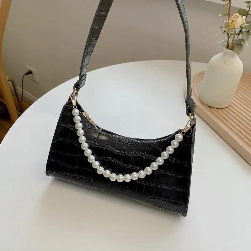Elegant and stylish women's shoulder bag with crocodile pattern and texture buckle design made of high-quality PU leather.
