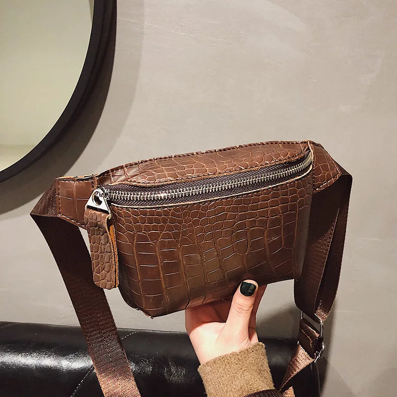 Crocodile Pattern Women's Belt Bag & Mini Messenger Chest Bag
