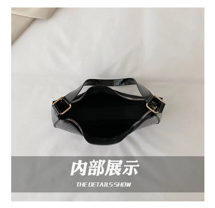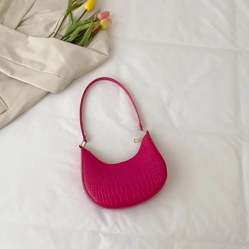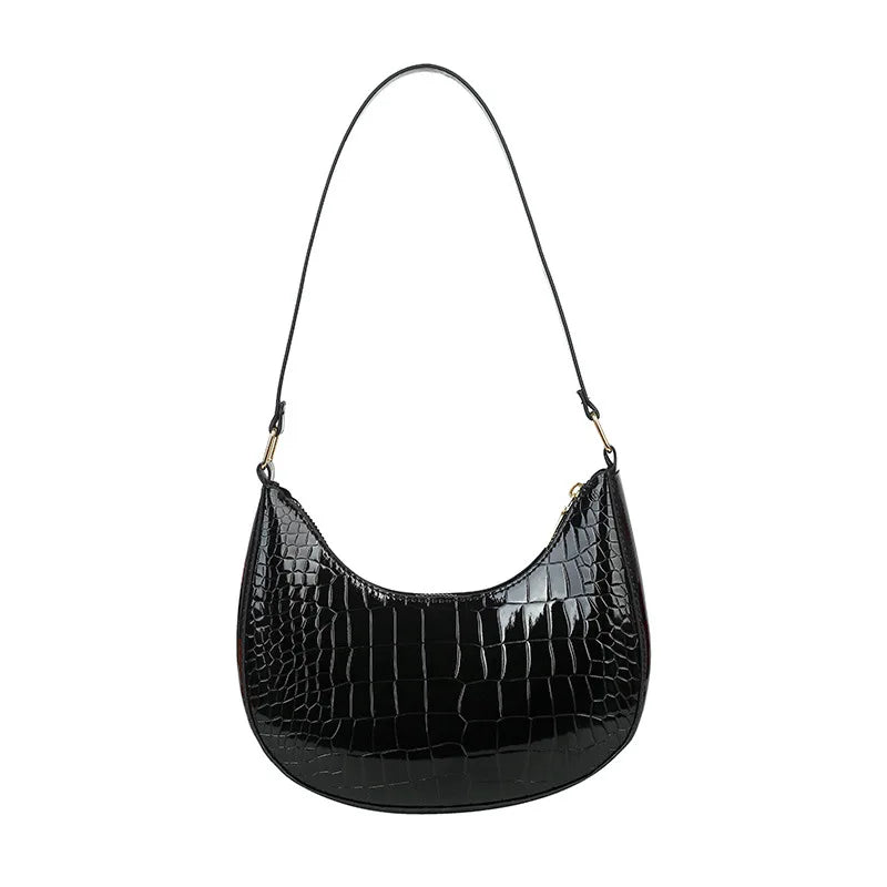 This stylish shoulder bag features a trendy crocodile pattern design, perfect for adding a touch of sophistication to your outfit. The half moon shape and crossbody style make it convenient for daily use.