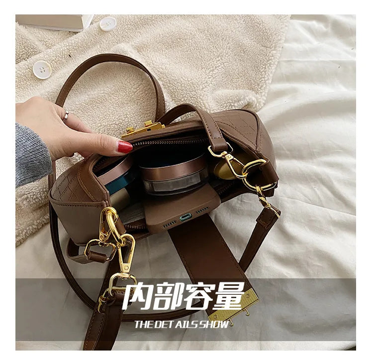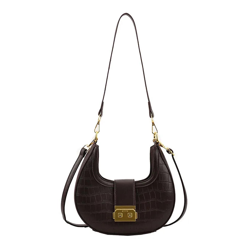 This stylish shoulder bag features a crocodile pattern design and lock detail. It can be worn as a crossbody bag and is perfect for everyday use.