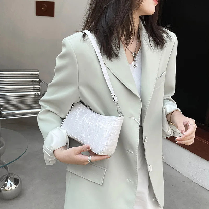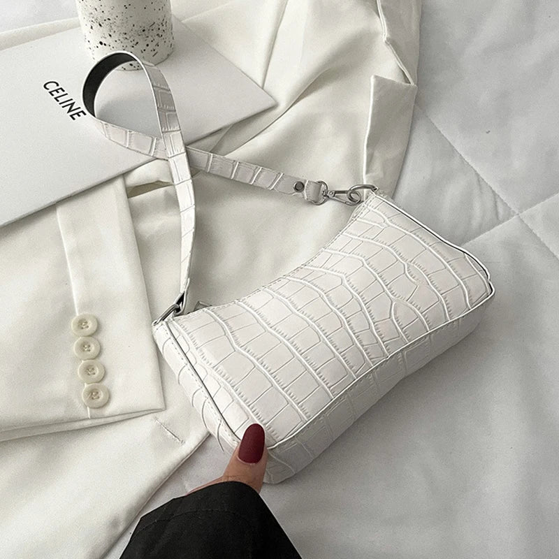 Elegant crocodile pattern and embossed lacquer texture shoulder bag for women. Small square bag included.