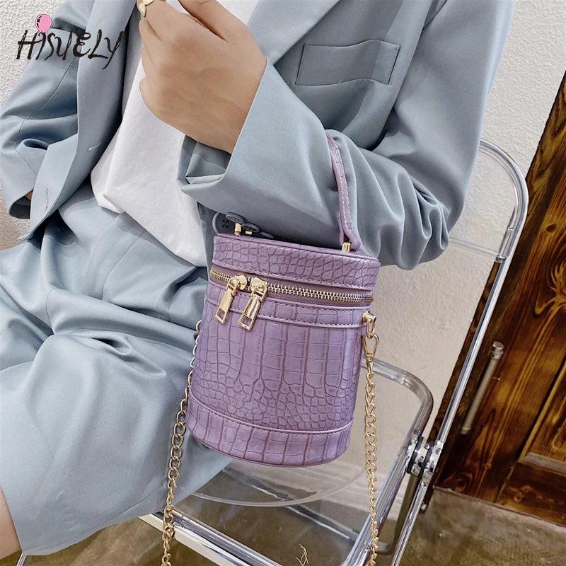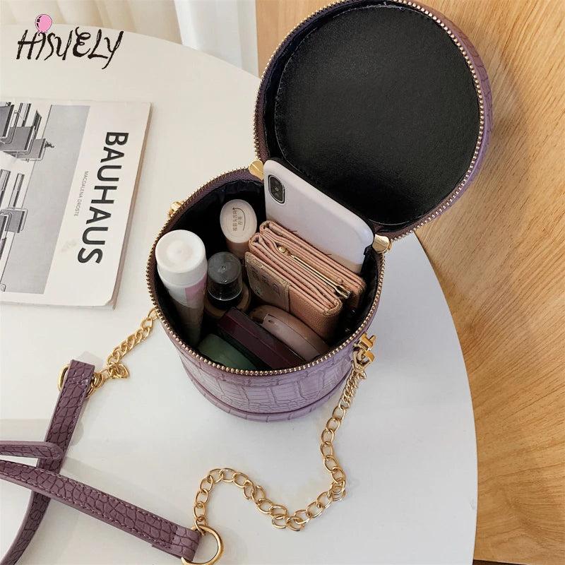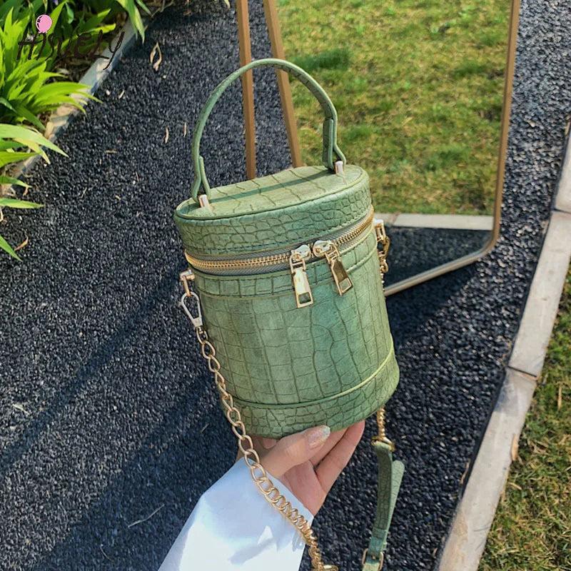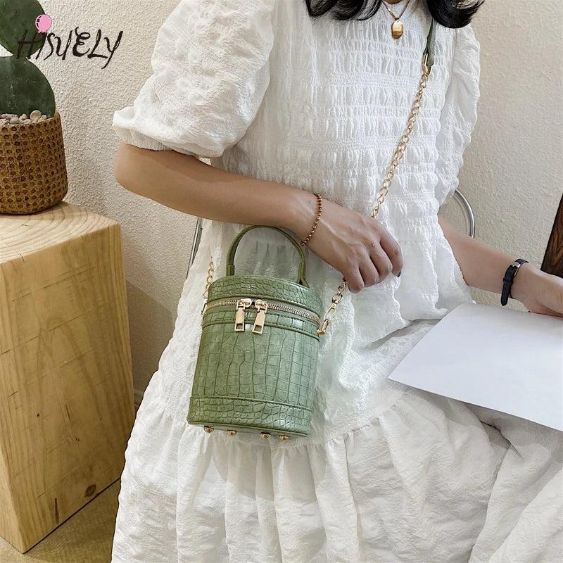 Elevate your style with this chic crocodile-patterned PU leather bucket bag. Perfect for carrying your essentials, this crossbody bag features a chain strap and is a versatile accessory for any outfit.