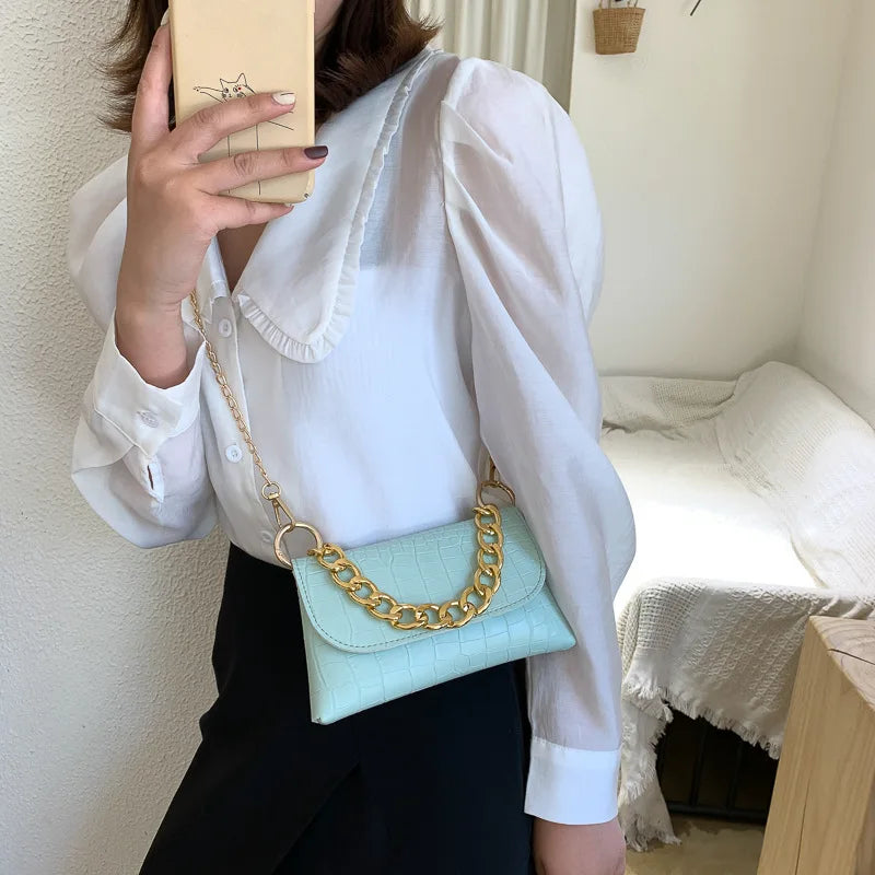 Stay stylish with this crocodile patterned summer messenger bag. The perfect accessory for any outfit.