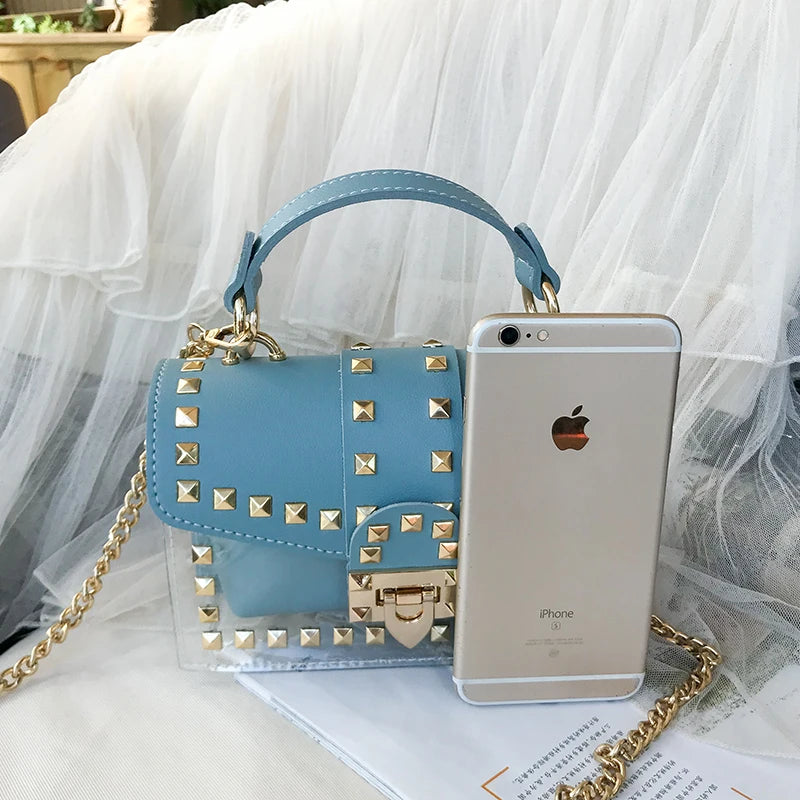 Cross Body Bags Transparent Purse Chains Rivet Women Handbags