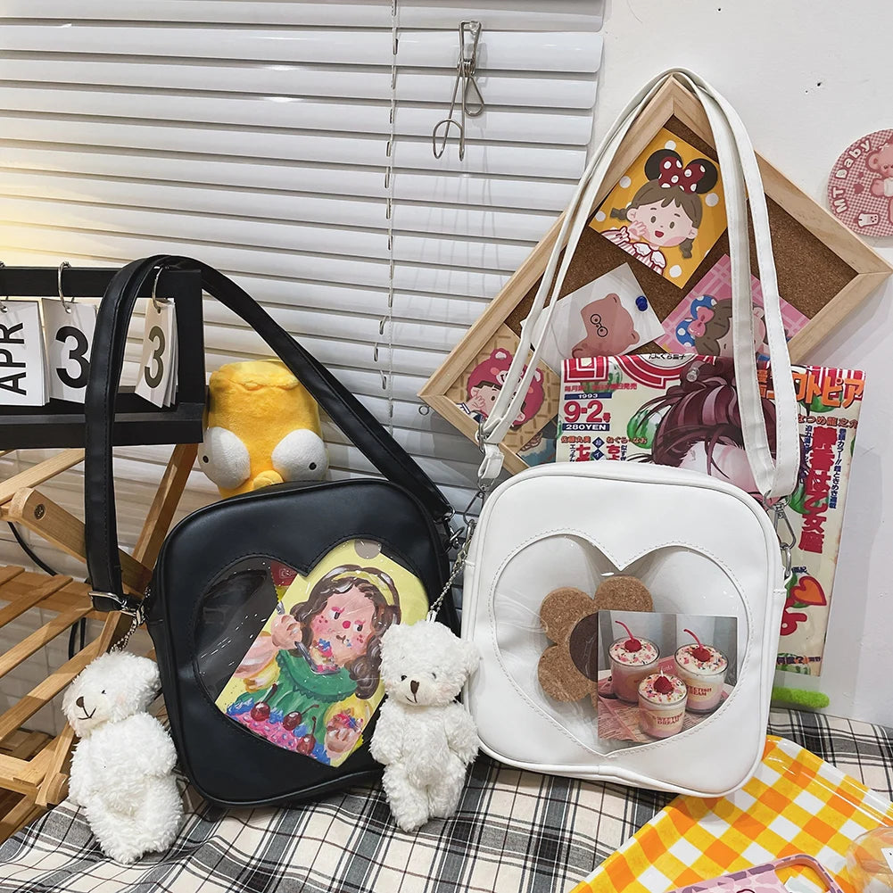 Crossbag PU Square Bag Ladies Love Itabag Transparent Heart Anime Lolita Bag
