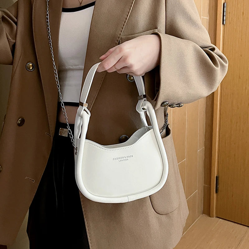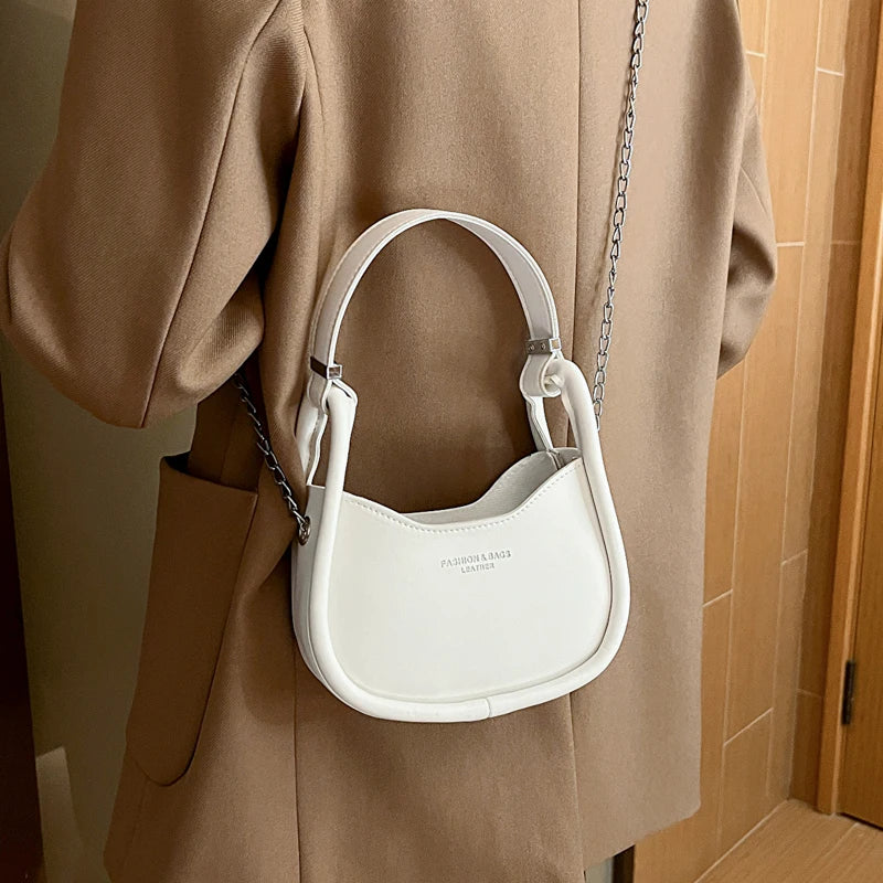 This crossbody bag is perfect for any occasion. Made of high-quality PU leather, it features a small handle and adjustable strap. The ideal handbag for women.