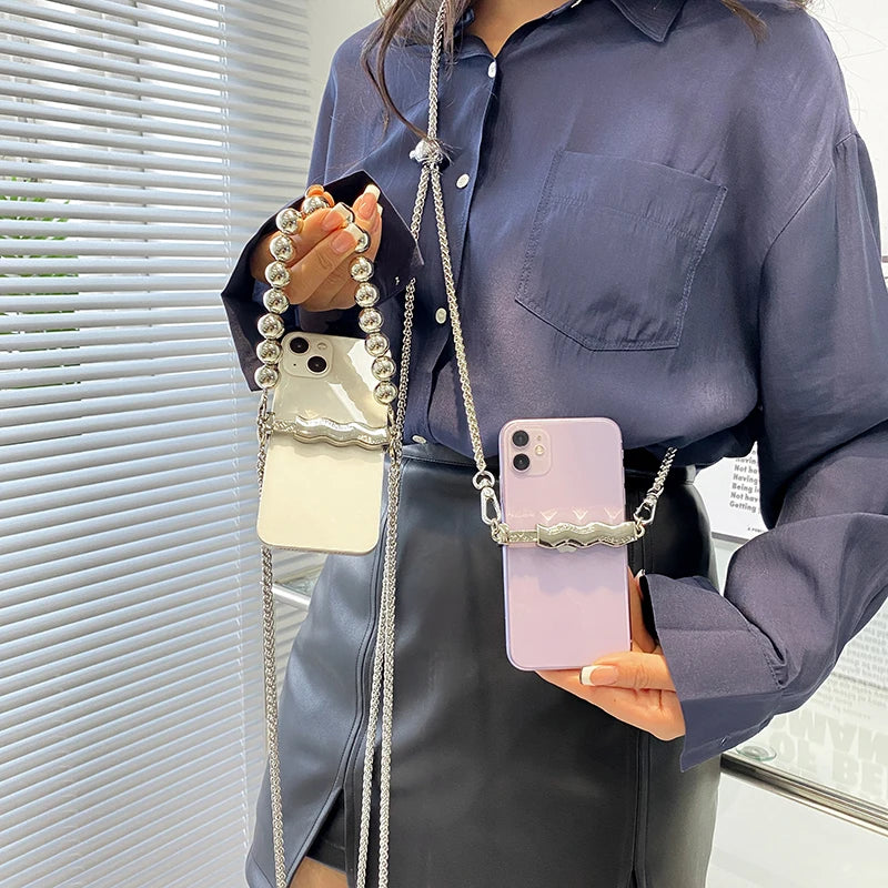 - Crossbody chain design for easy and secure phone carrying