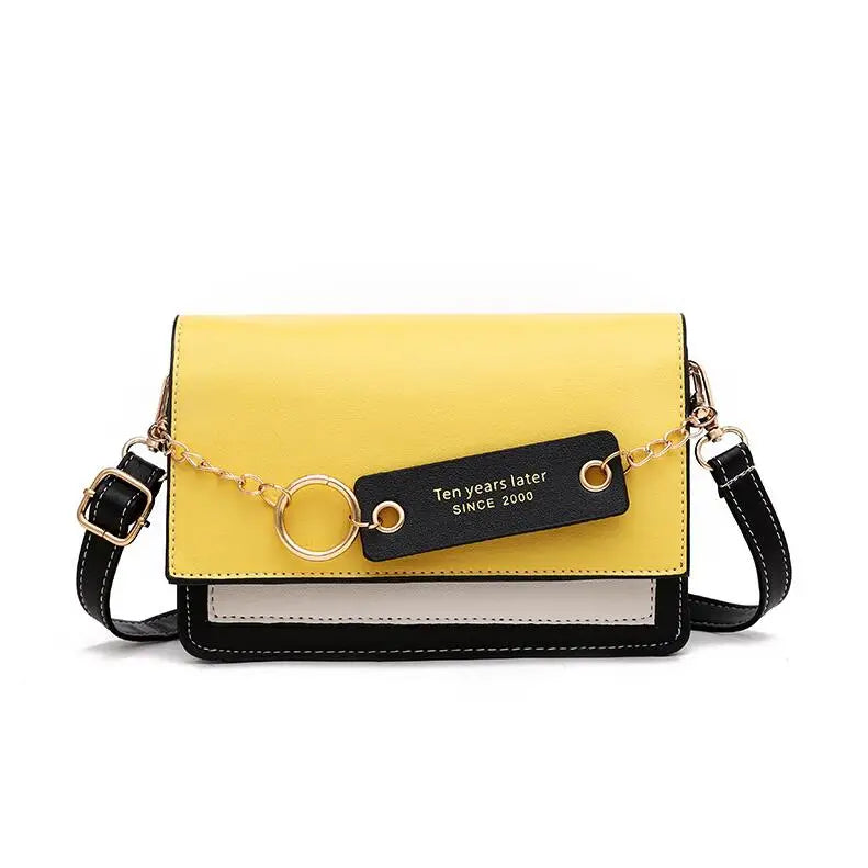 Stay stylish with this chic crossbody shoulder bag made of PU leather. It features panelled flap design with a ring chain and contrast details, perfect for any occasion.