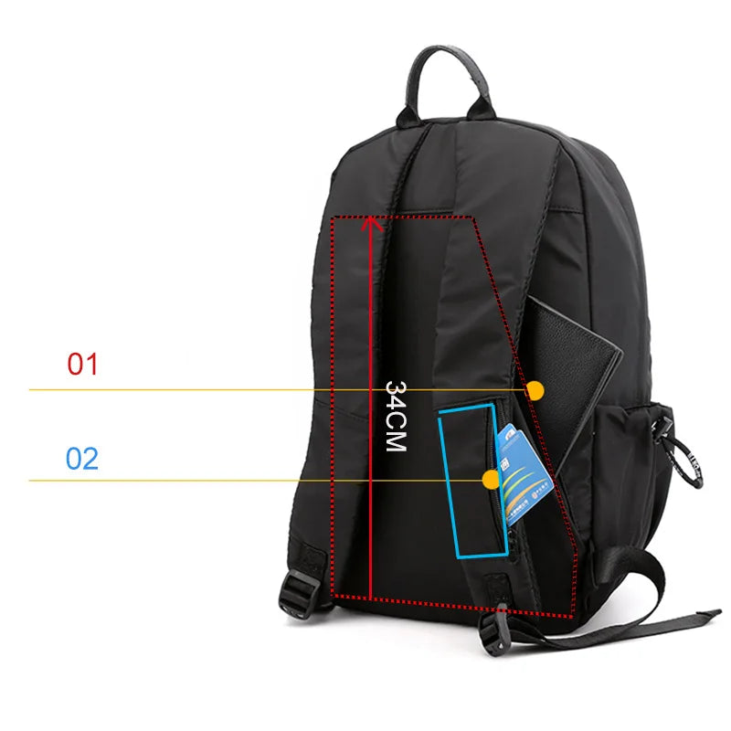 Stay organized and secure with this nylon waterproof travel backpack. It features USB charging capability, pleated design for extra storage, and anti-theft features. Perfect for fitness and sports enthusiasts.