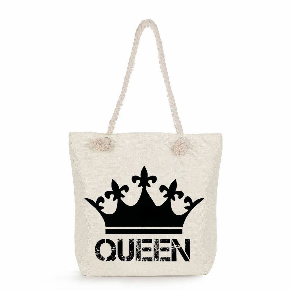 Crown Women Shoulder Bag High Capacity Tote Bags King And Queen Letter Print Han