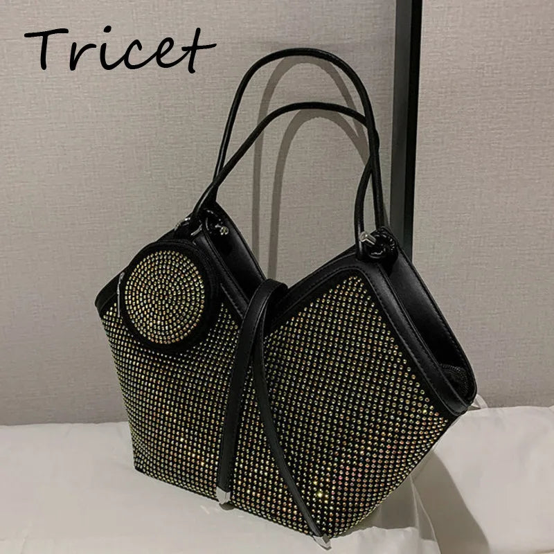 Crystal Bling Mini Round Shoulder Bag for Women Lady Shopping Bag 2pcs