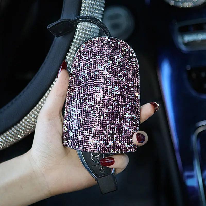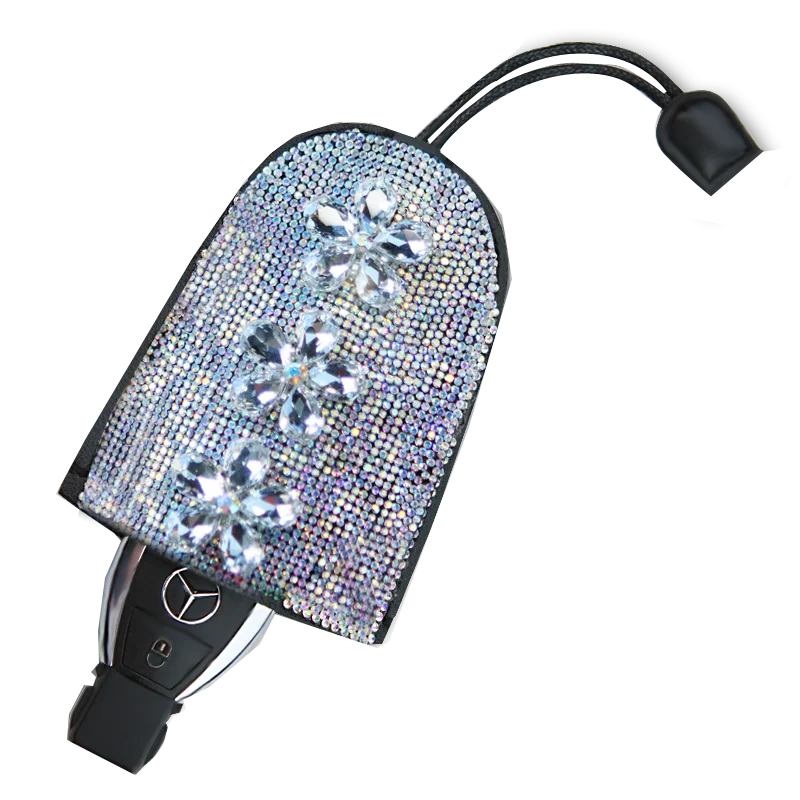 Add a touch of elegance to your car key with this crystal key case. Fits most car keys. Easy to attach and remove.