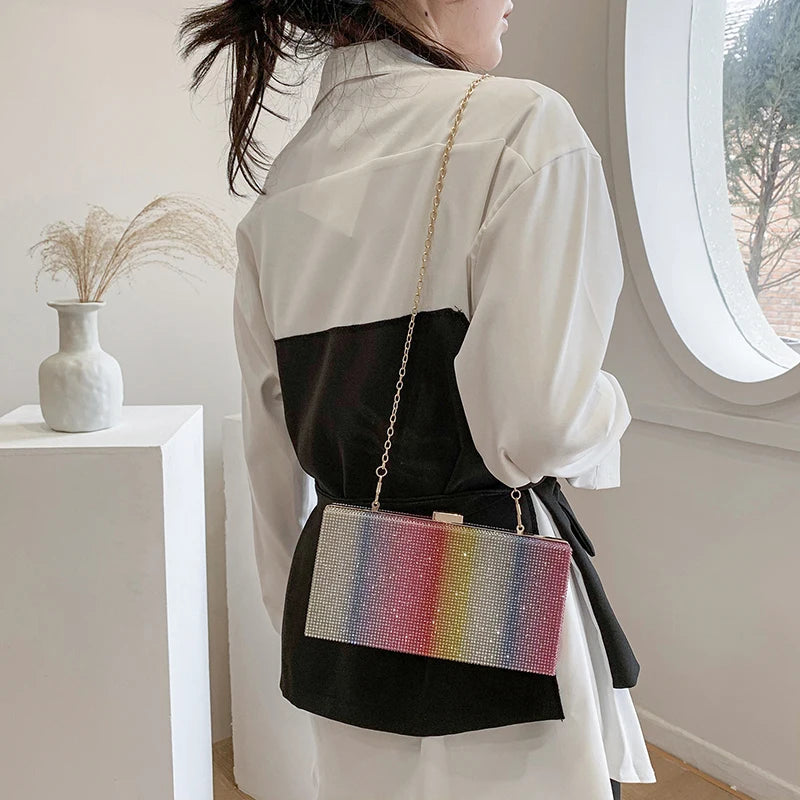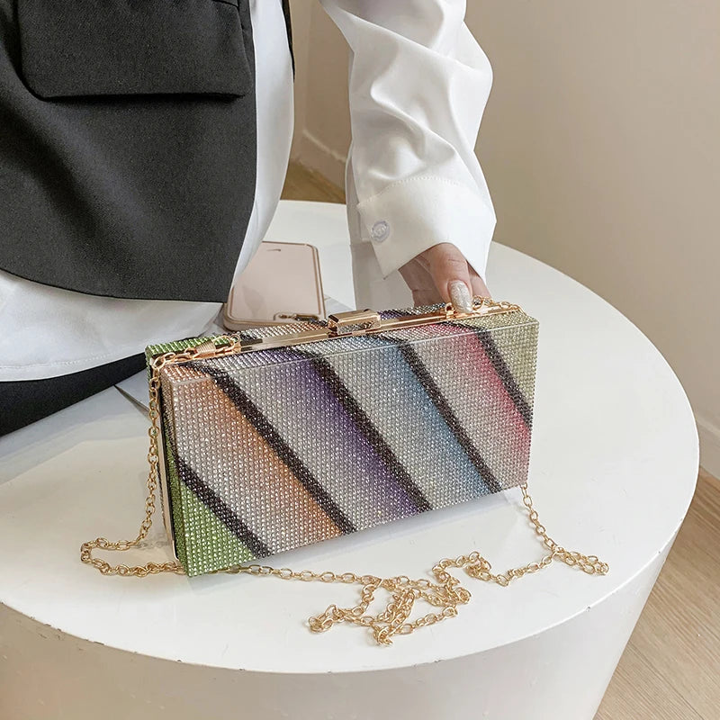Crystal Diamond Square Box Hand Bag Crossbody Shoulder Bag