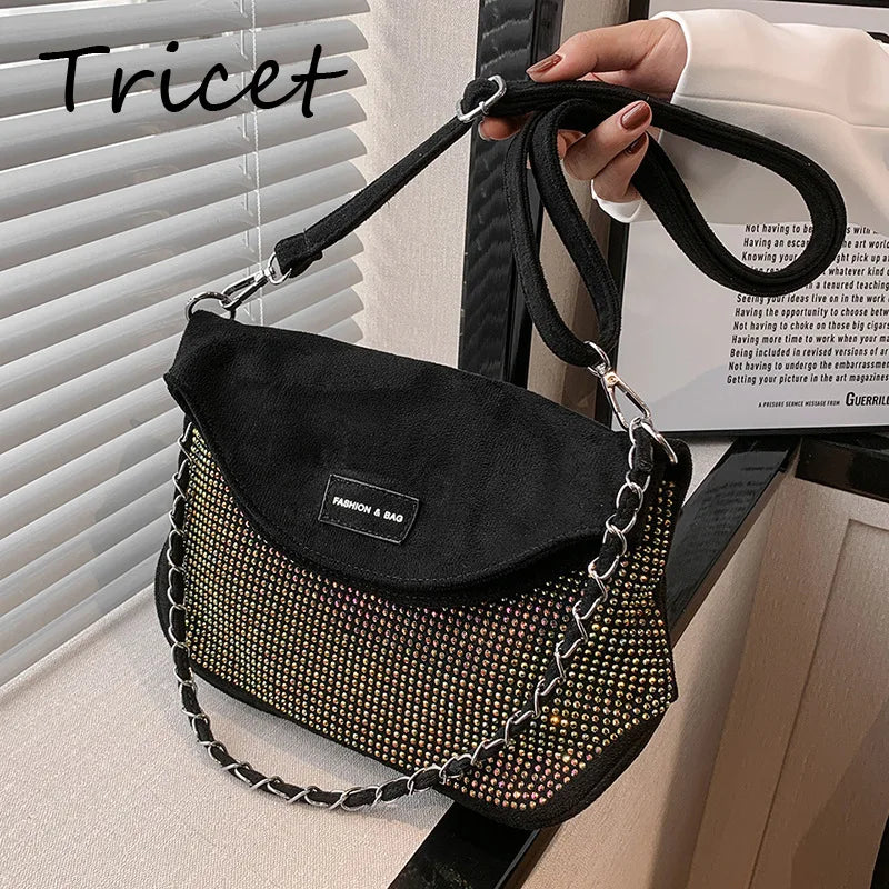 Crystal Shoulder Bag Cross Chain Flap Body Bag Women Stylish Lady Hand Bags