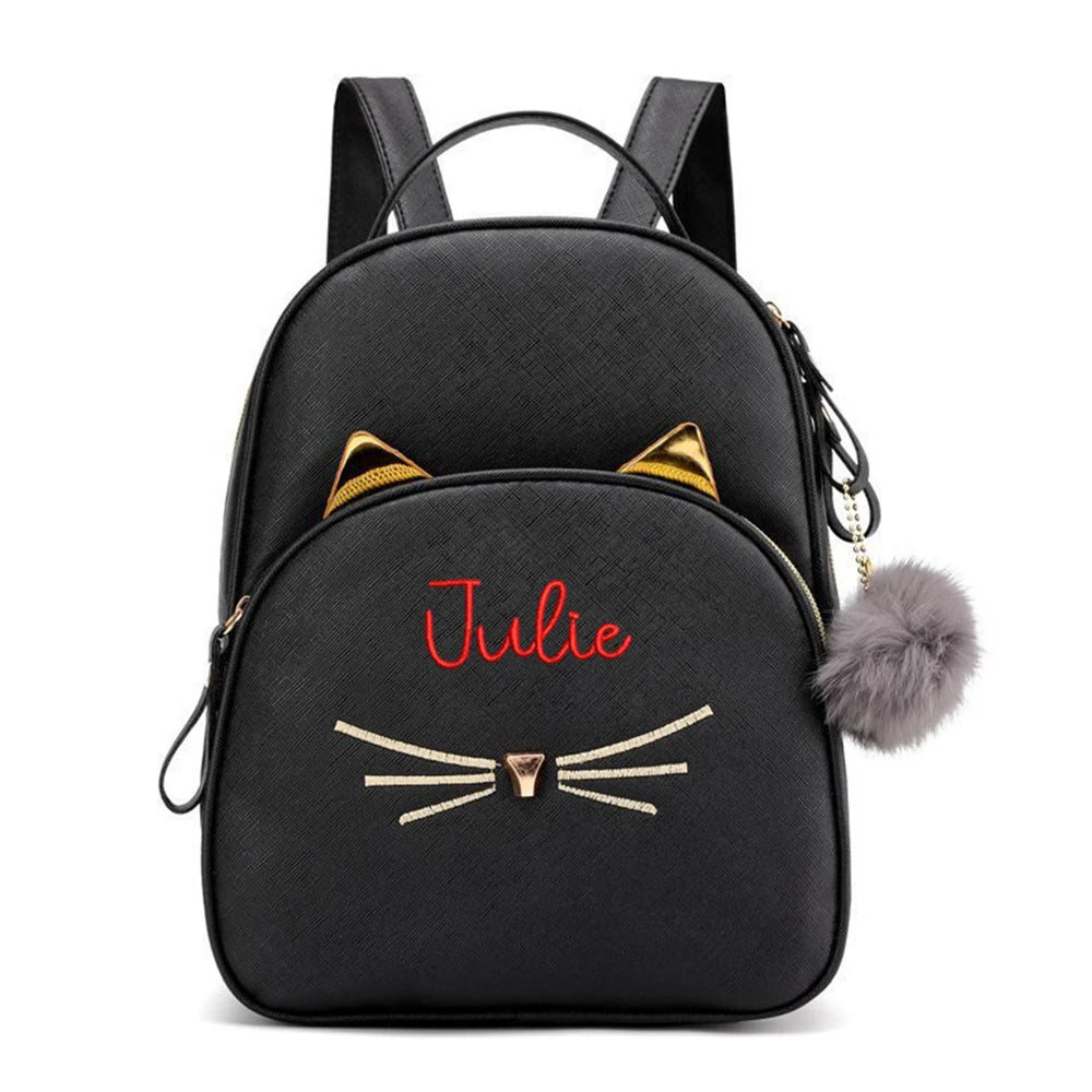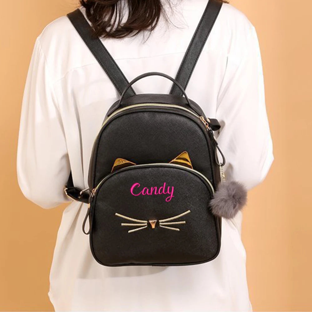 Custom Name Ladies Backpack Embroidered Outdoor Birthday Gift PU Cartoon Mini Ba