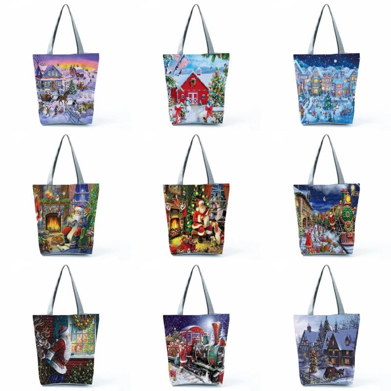 Customizable Christmas Girl Tote Bag Santa Print Handbag for Women
