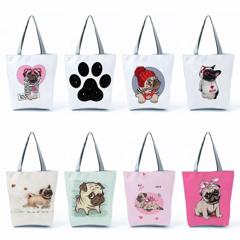 Customizable Pug Paw Funny Print Women Shopper Bag Handbag