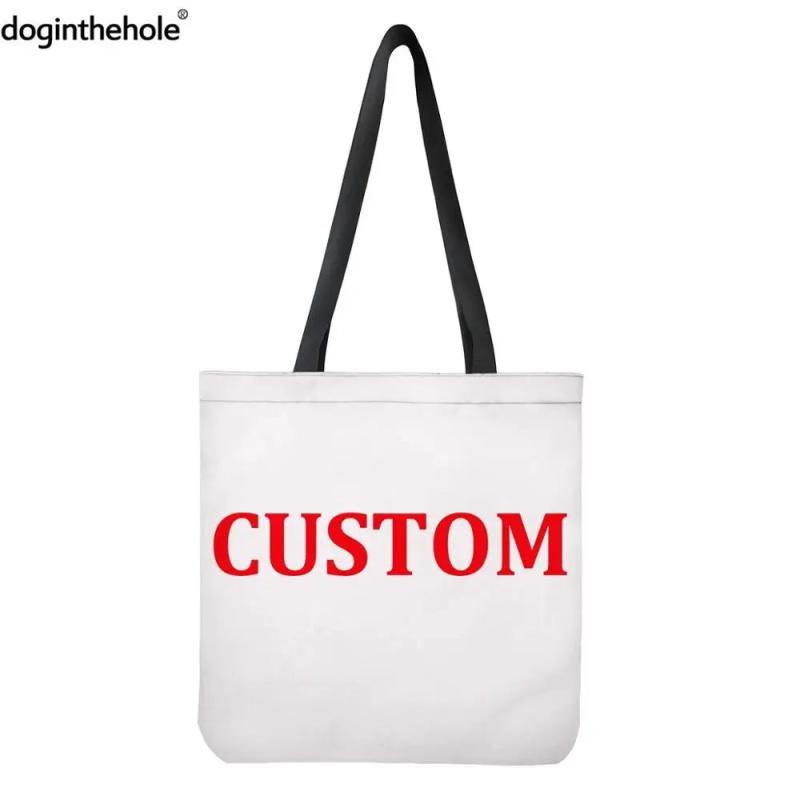 Customized Logo Linen Shoulder Bags Personalized Canvas Tote Handbag