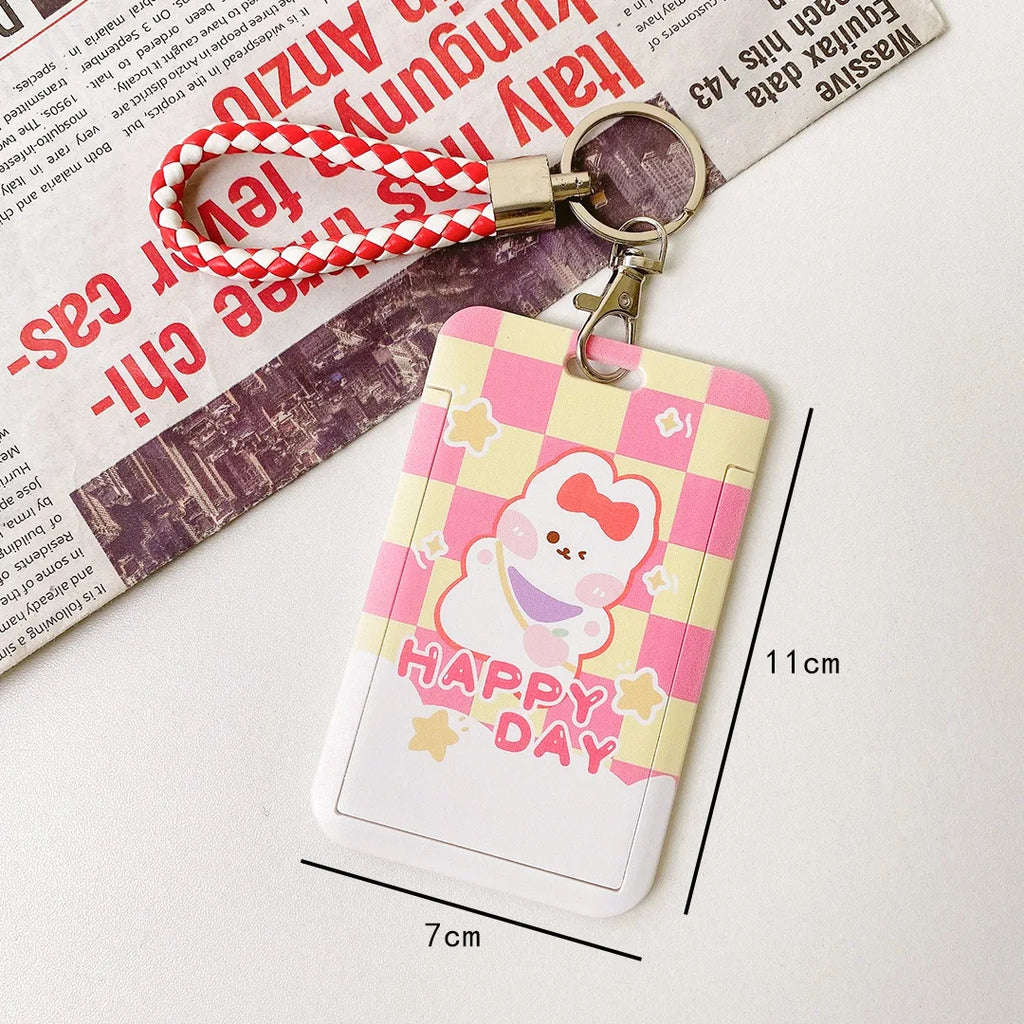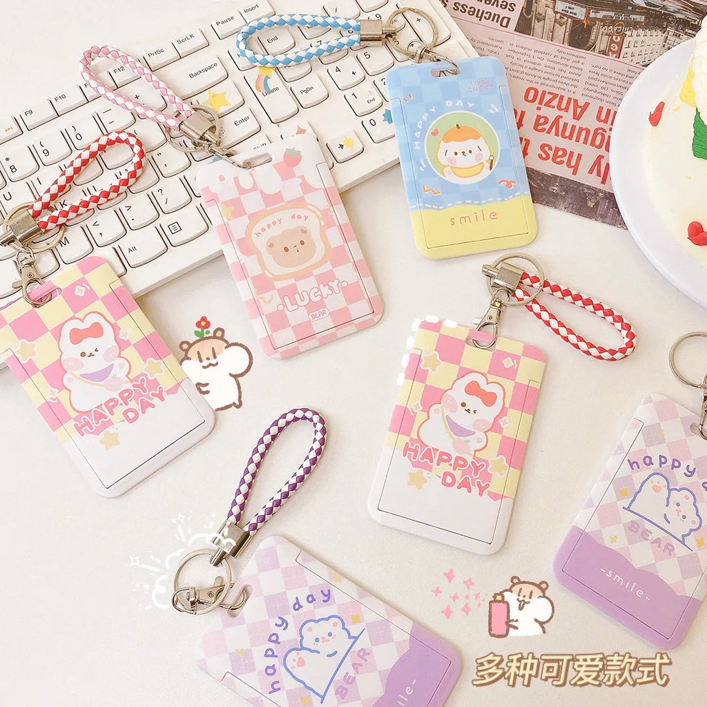 Cute Cartoon Bus Card Holder with Sliding Cover - Student Campus Access Keycha