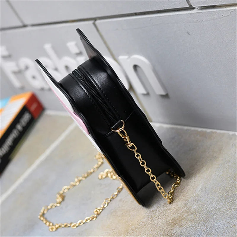 Cute Ice Cream Shoulder Bag with Zipper for Women 3D Chain Crossbody Cartoon PU