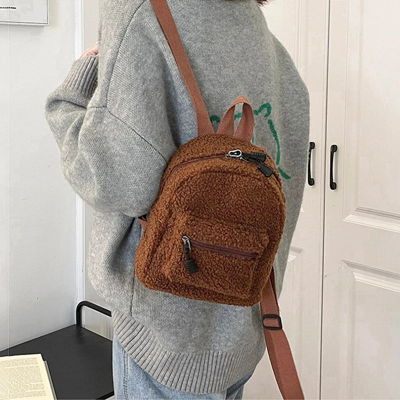 This adorable mini backpack is made from soft plush material, perfect for carrying your essentials in style. The compact size and adjustable straps make it great for everyday use.