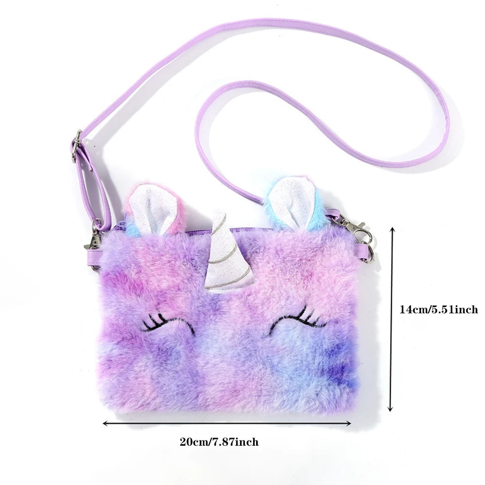 Adorable cartoon unicorn shoulder bag made of corduroy, perfect for travel. Ideal gift for girls during Christmas.