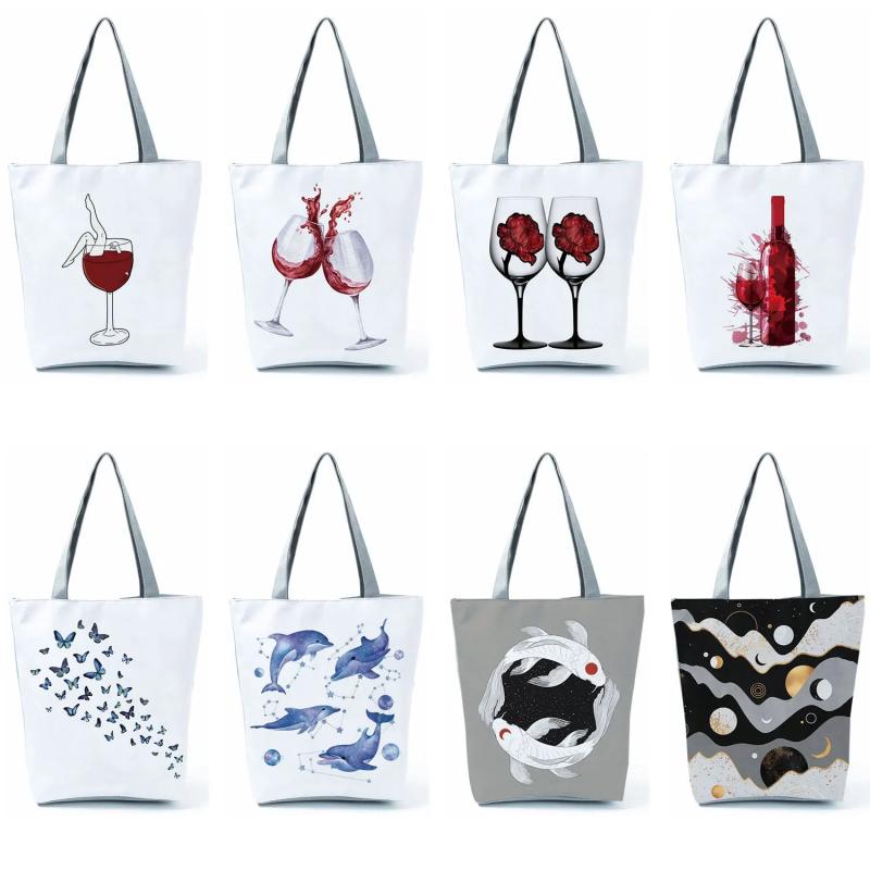 This adorable tote bag features a fun wine glass print design, perfect for wine lovers and fashion enthusiasts alike. The bag is spacious and durable, making it an ideal companion for any outing.