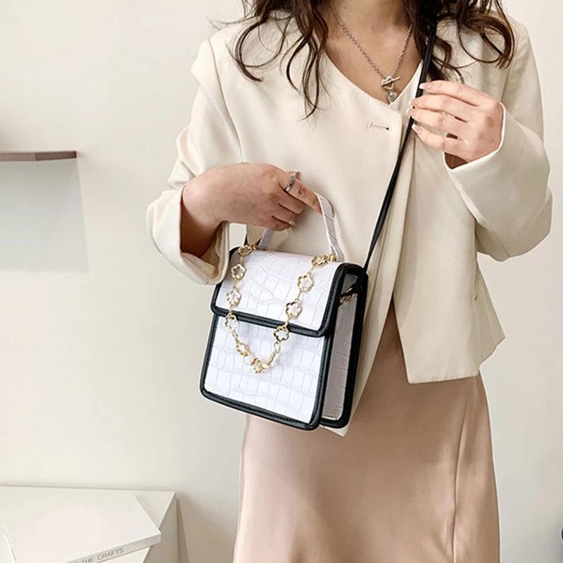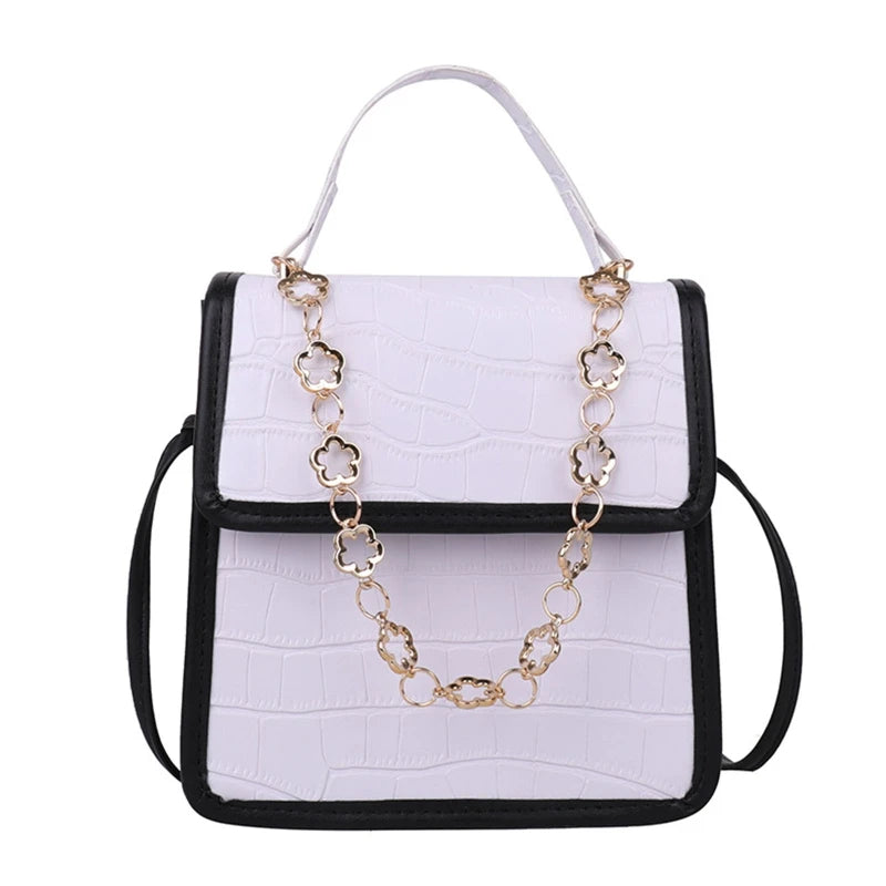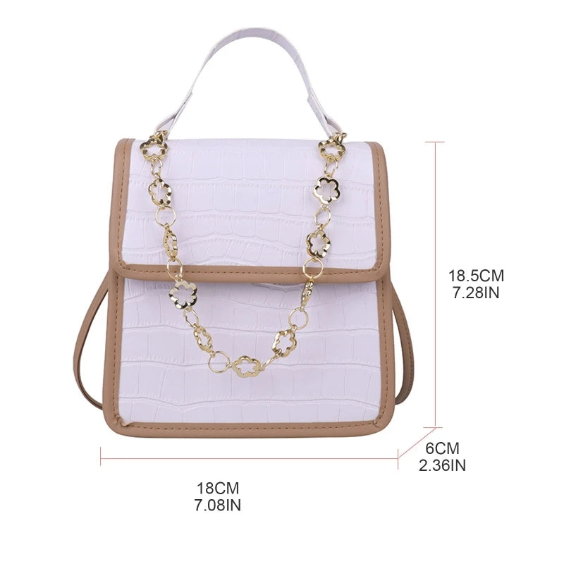 Stay stylish and organized on-the-go with this chic PU leather travel bag. Features a stone pattern design and a convenient chain shoulder strap.