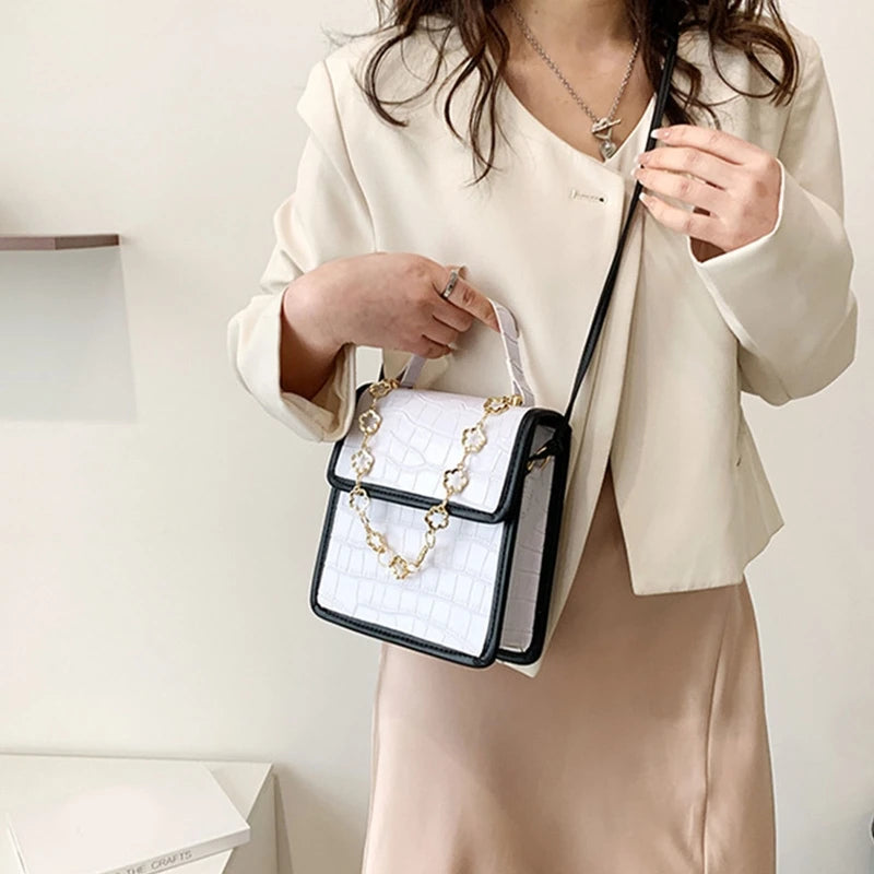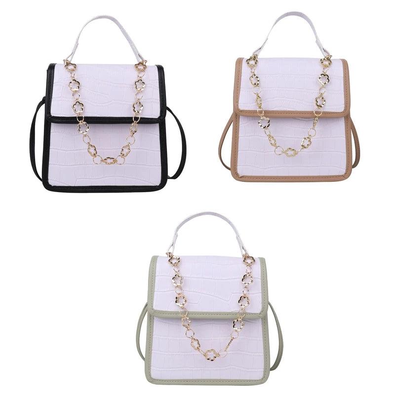 D0LF Chain Travel Bag PU Leather Shoulder Bags Women Stone Pattern Crossbody Han