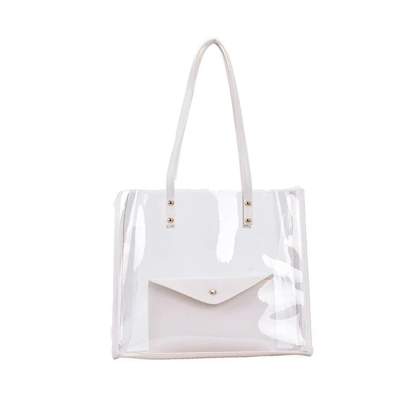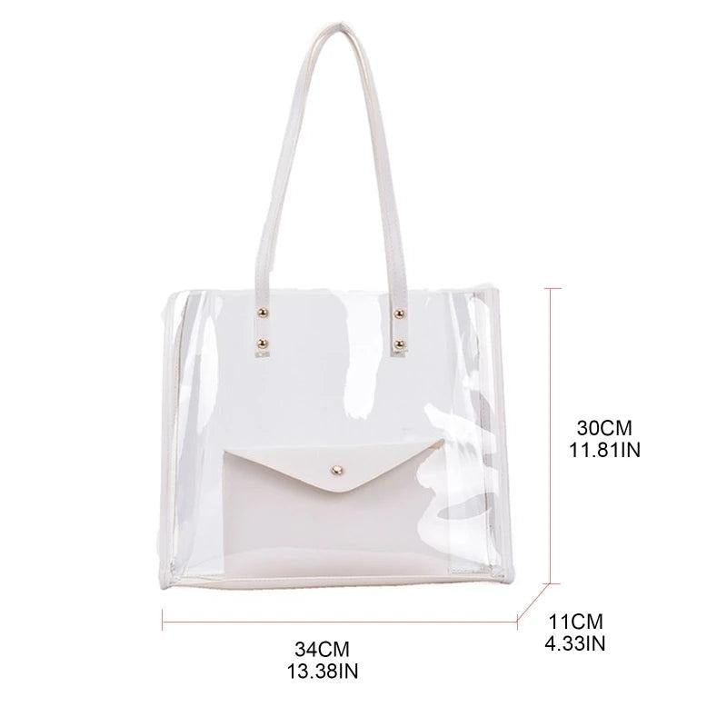 Stay stylish and trendy with this transparent PVC shoulder bag. Perfect for women and girls to carry to the beach or summer outings.